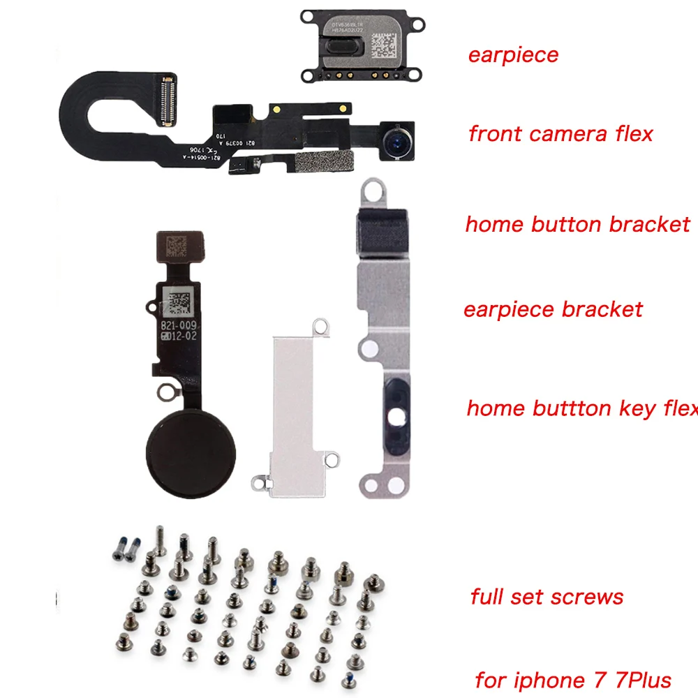 Product Name: Piezas de lcd completo para iphone 7 7 Plus altavoz de cámara frontal con soporte de Metal botón de inicio Cable flexible y tornillos de juego completo